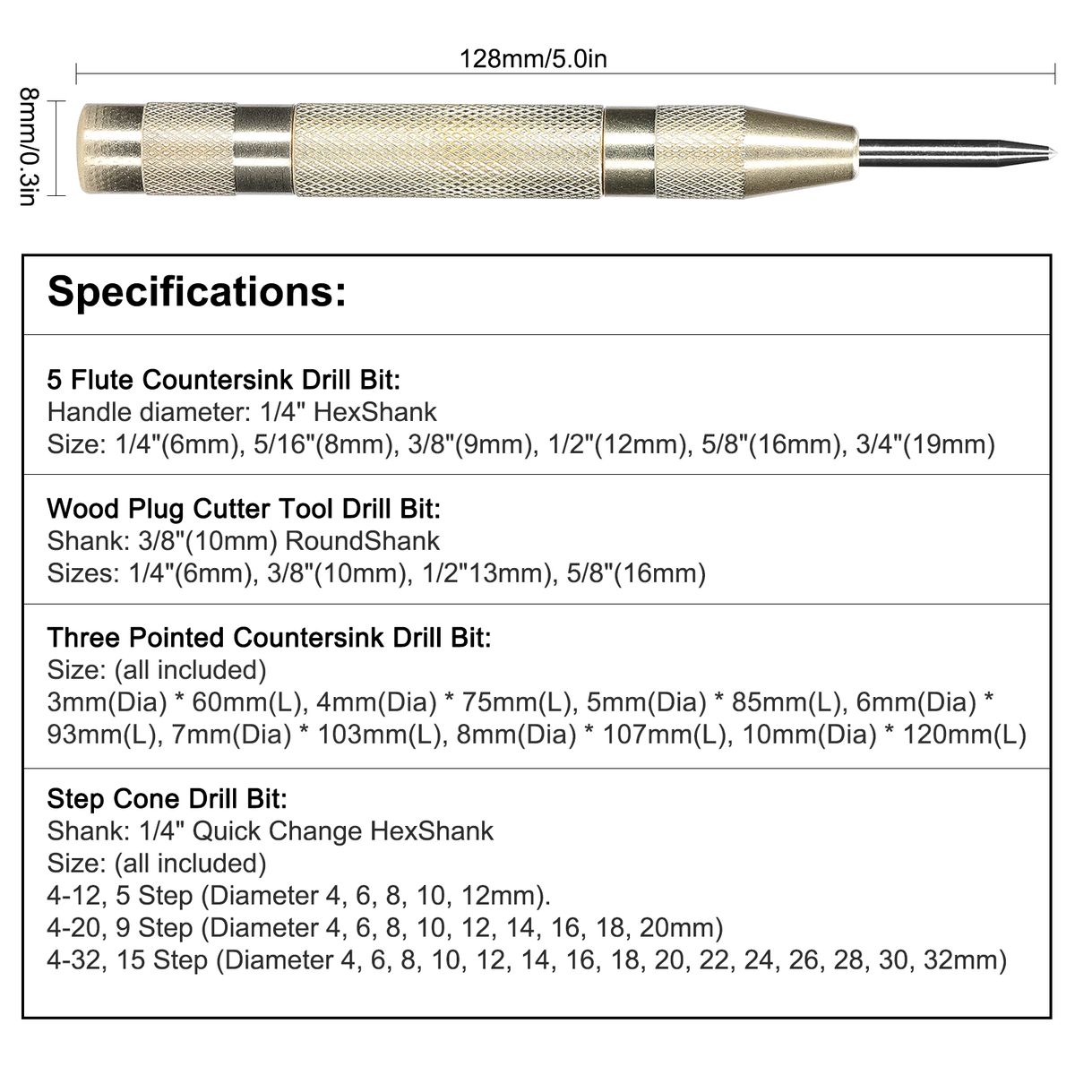 Easy to use: The included hexagonal wrench and center punch make it easy to use these drill bits with accuracy.