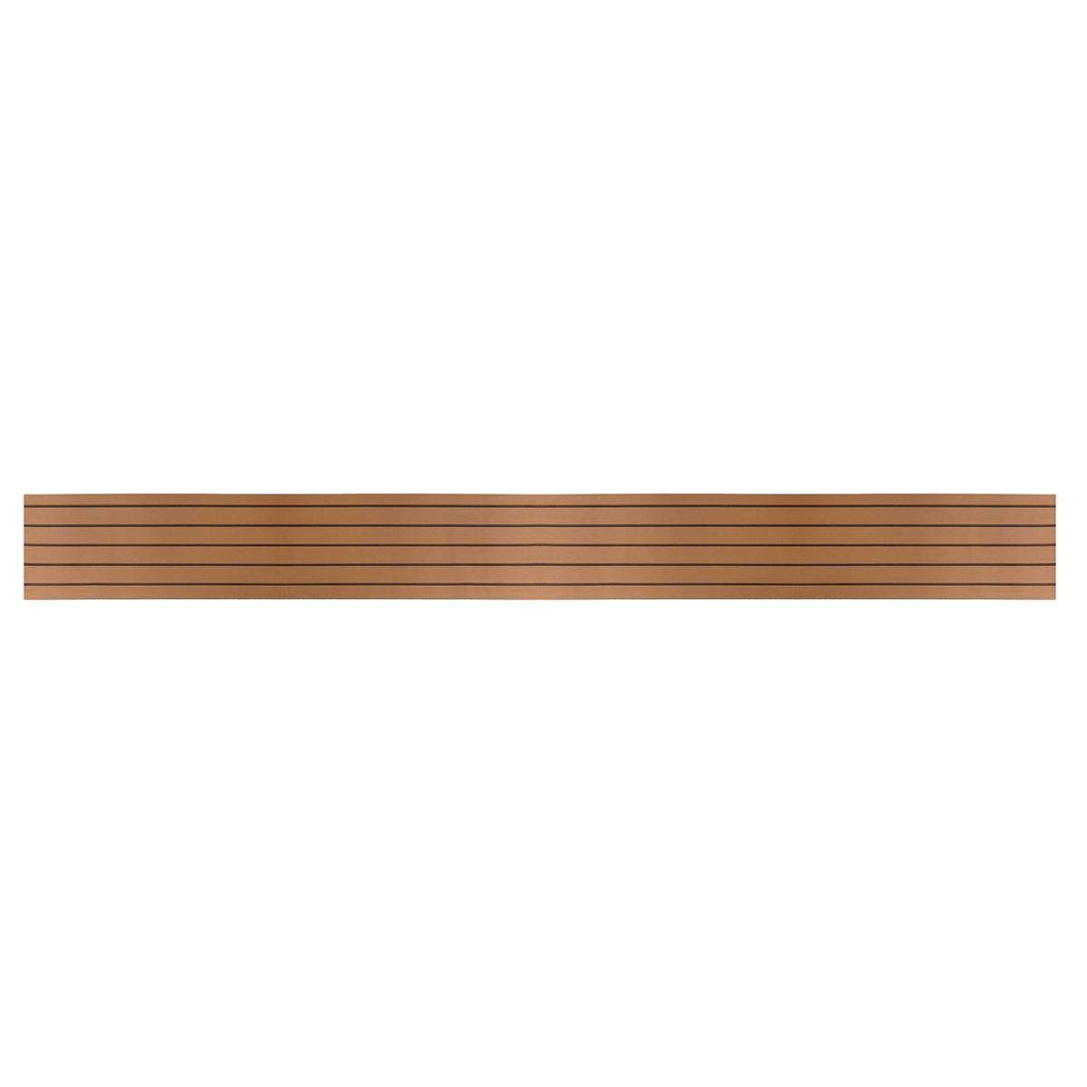 -Teak brown over black and can easily be cut down to fit nearly any surface on a boat where non-skid,or protection for the boat's surface is required.