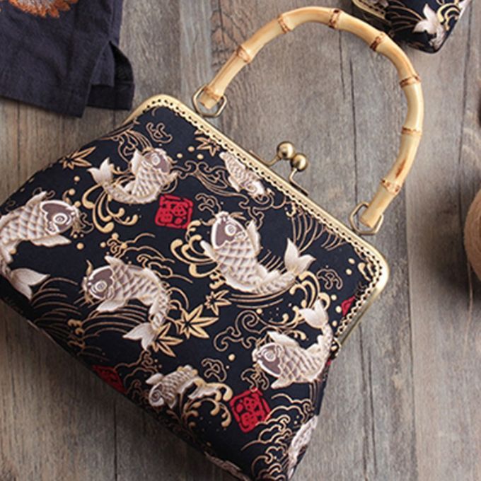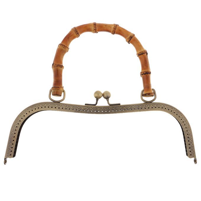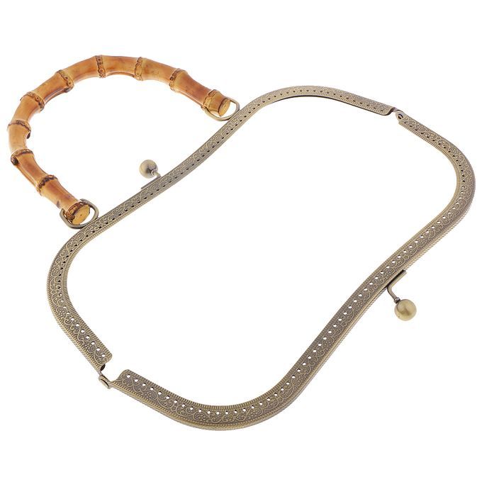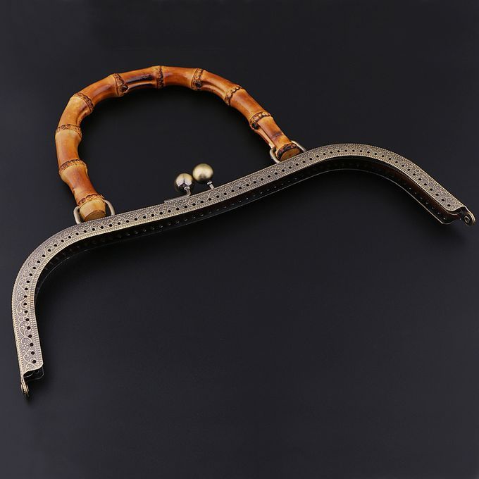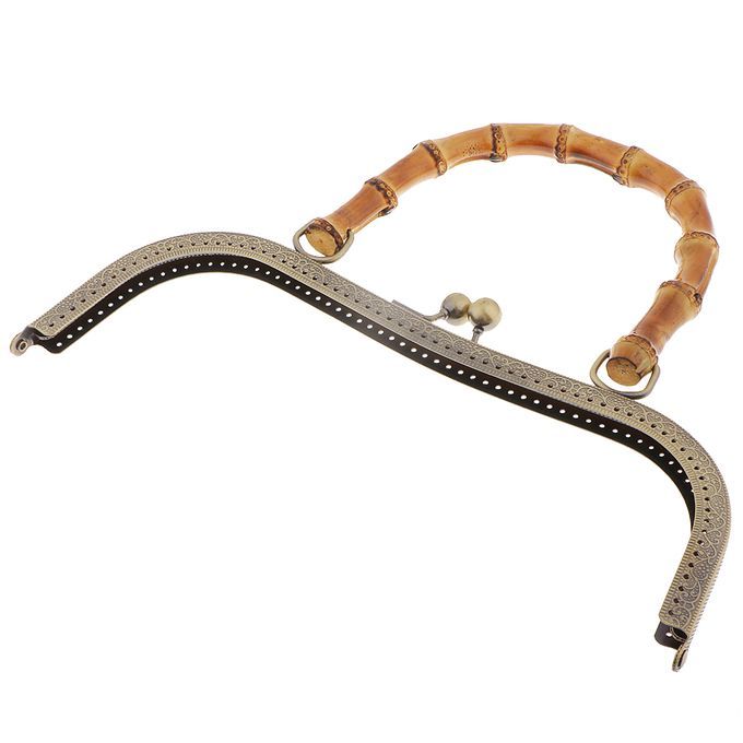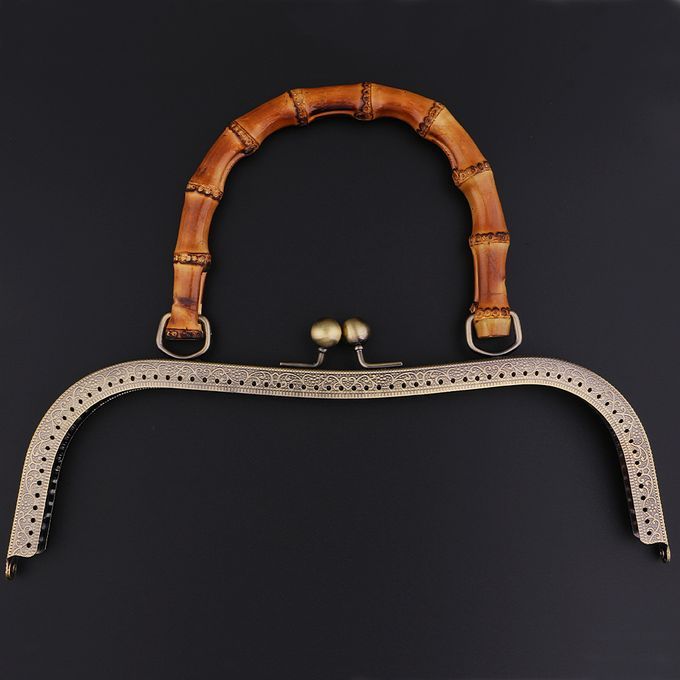 Bamboo handle metal frame kiss clasp lock