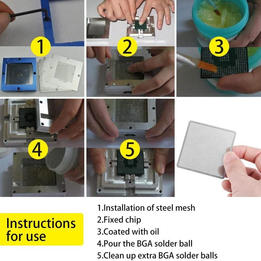 Specially Designed - It is specially designed for laptop, desktop, communication main board north-south bridge, and graphics card, etc all kinds of BGA chips. It is easy and quickly for reballing the BGA IC, useful and economical accessories for BGA soldering.