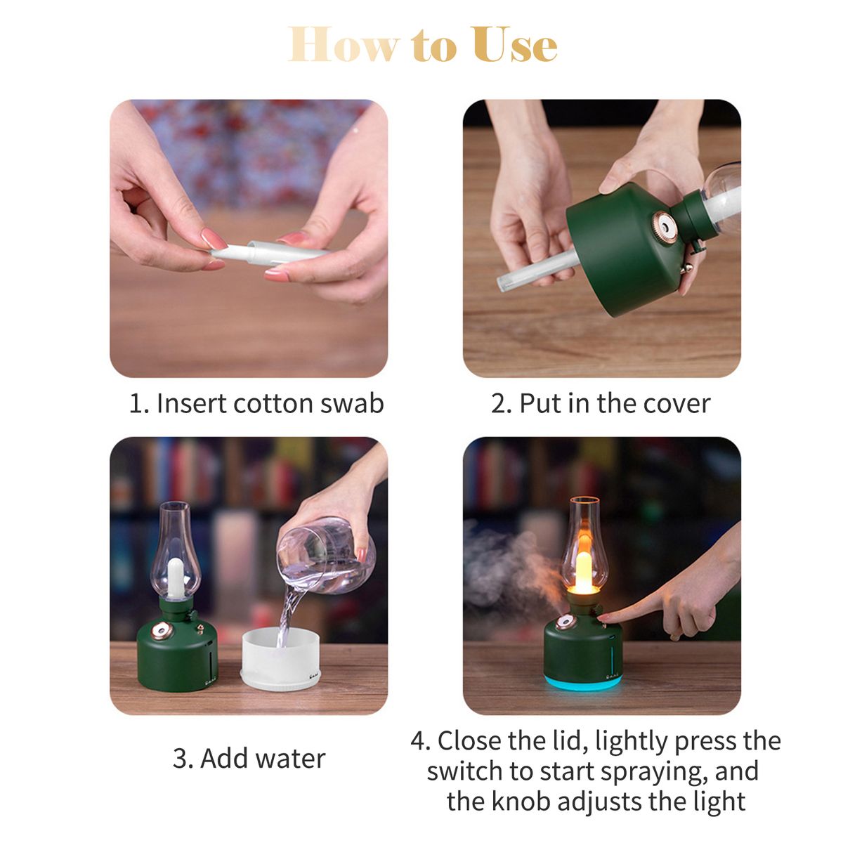 [Great Decoration]The kerosene lamp-shaped humidifier has a chic and elegant shape, which can be used as a fashionable decoration.