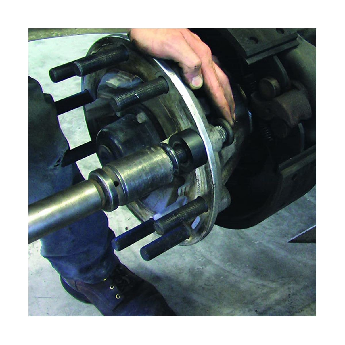 The tool body is equipped with a thrust to pull the new wheel stud into p