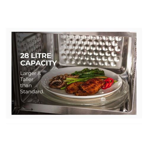 - LARGE CAPACITY: Family-sized microwave features 28 L capacity with tall height for use of the grill function, including a wide 325 mm glass turntable