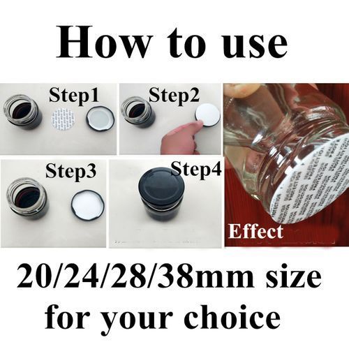 Place the liner onto the opening of the bottle/jar. Make sure the rim is dry, clean and smooth. The one side with word should be the upper side (see picture shown). Twist your cap onto the bottle. Leave in place for 30 minutes. This gives the adhesive time to release leaving the liner attached to the rim. You will see the liner sealed closely onto the rim of the bottle/jar opening after you take off the outside cap 30 mins later.