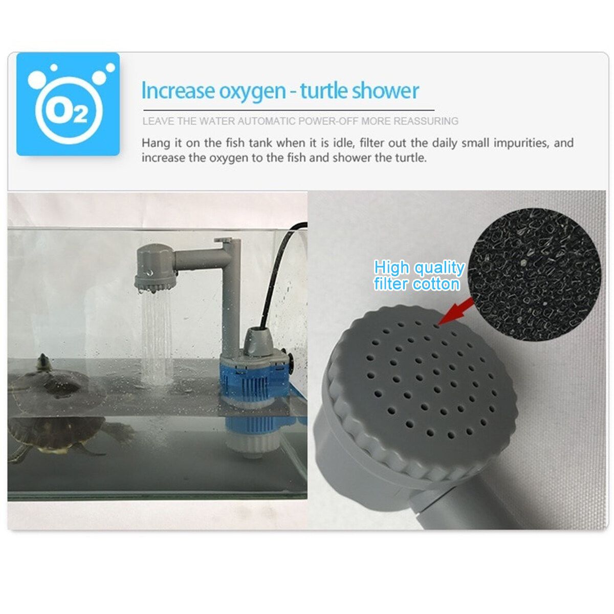 4. Connect the shower connector to shower the turtle and add oxygen to the fish tank.