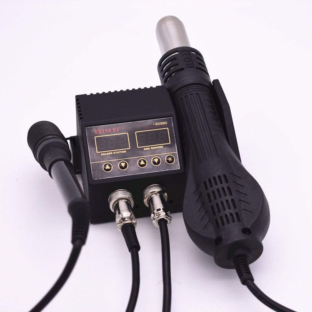 This is a 2in1 SMD Rework Soldering Station 8586D. Alloy metal body with highquality silicone shell features elegant appearance and power saving. You can use hot air gun and soldering separately, with no interference with each other.