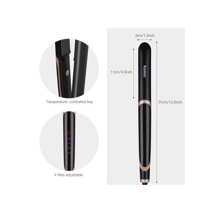 Feature:LED digital temperature displaytemperature can be adjusted from 140℃-160℃-180℃-200℃.3D floating plate design, can reduce the friction between the hair and the plate to prevent hair damage caused by pulling.Tourmaline ceramic coating, can release large amounts of negative ions when heating, reduce hair static electricity and frizz.Far-infrared function, can lock moisture and natural oil.Note: This product can be used in 110-220V voltage area, but for the 110V voltage area, charging speed is slow.