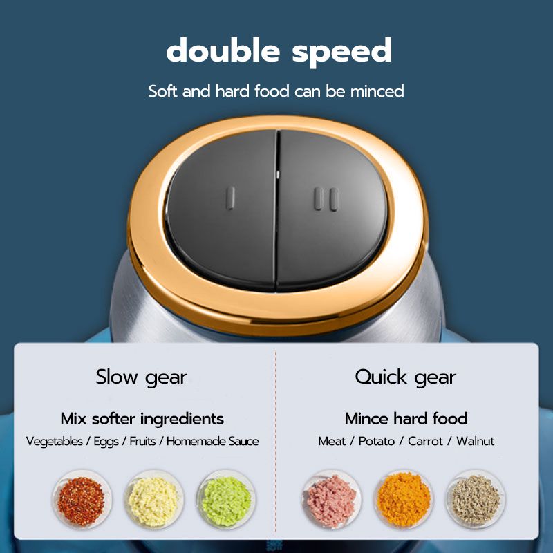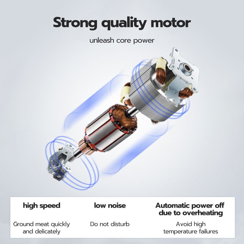 The HAN RIVER grinder uses a sharp blade to make it easier for us to process food/meat. There are 2 grinding modes, slow mode grinds softer materials, and fast mode grinds hard materials.