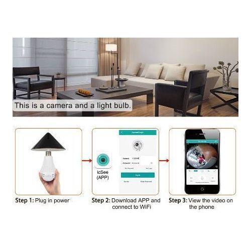 ? ?Easy to Use?First, screw this camera bulb into the lamp holder, and Download the free App by scan QR code on the box, Login to add IP camera.