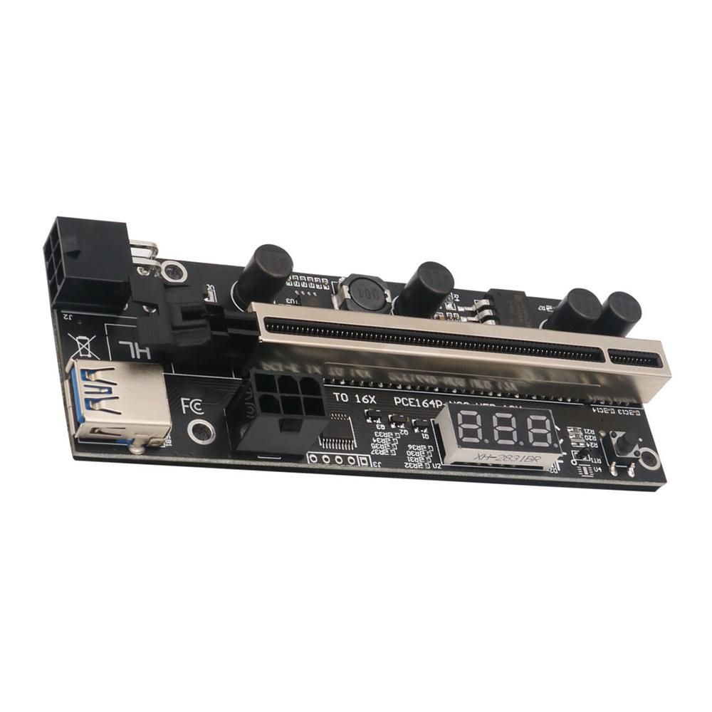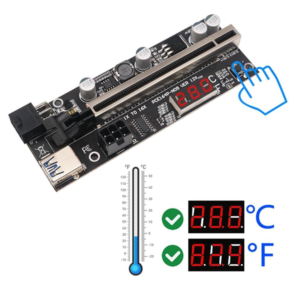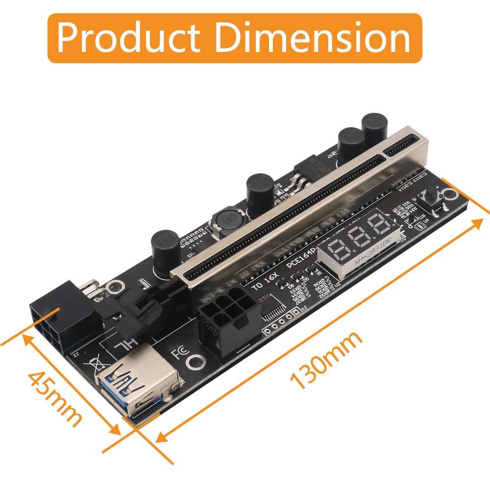 5. More --- two graphics cards with 6-pin interface, two interfaces. This new version adds the temperature sensor and the temperature display. This riser kit is compatible with the 1x, 4x and 8x, 16x PCI-E slot on the motherboard, dedicated to coin mining. Item type: PCI-E Riser Card