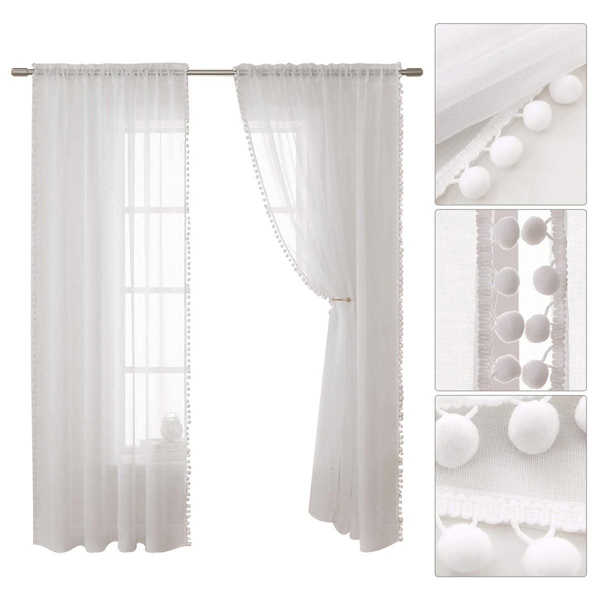 2. Rod-top curtain construction: Our Voile translucent curtains feature rod-shaped pocket construction for easy hanging, with an elegant and pleated look. The pocket inserts can be fitted
