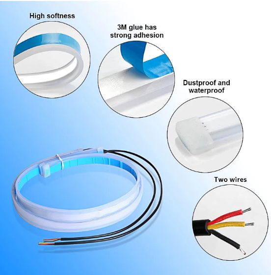 2 PCS DRL Car Flexible LED Daytime Running Lights Turn Signal Headlight Stickers Waterproof 30cm 45cm 60cm White Red Yellow Blue