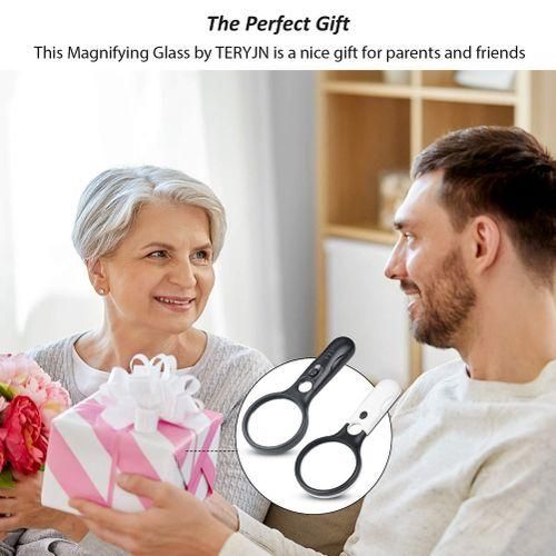 [Unique Design]: The novel and stylish black and white magnifying glass with led light body designs are simple and elegant, exquisite precious, and refreshing. The independent triangular oveapping battery compartment design does not occupy space and is small and exquisite, making it more convenient and quick to replace the battery. At the same time, magnifying glass switch button uses elastic material, which makes the operation more comfortable.
