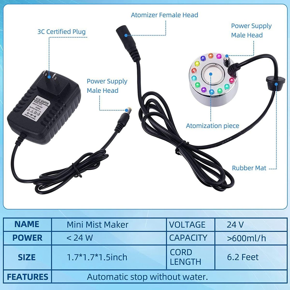 Designed to Create a Spooky Halloween Atmosphere: our mist maker fogger is designed to make a mount of mist, you can put it in your water fountain, pond, fish tank, vase, birdbath or other places to create a spooky Halloween atmosphere