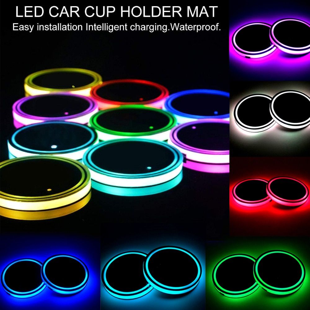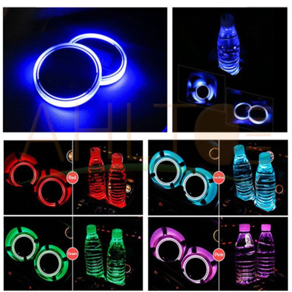 1X 2Pc Universal New Led Car Cup Holder Bottom Pad LED Light Cover Trim Atmosphere Lamp Lights Anti-slip Mat Colorful Light Coaster