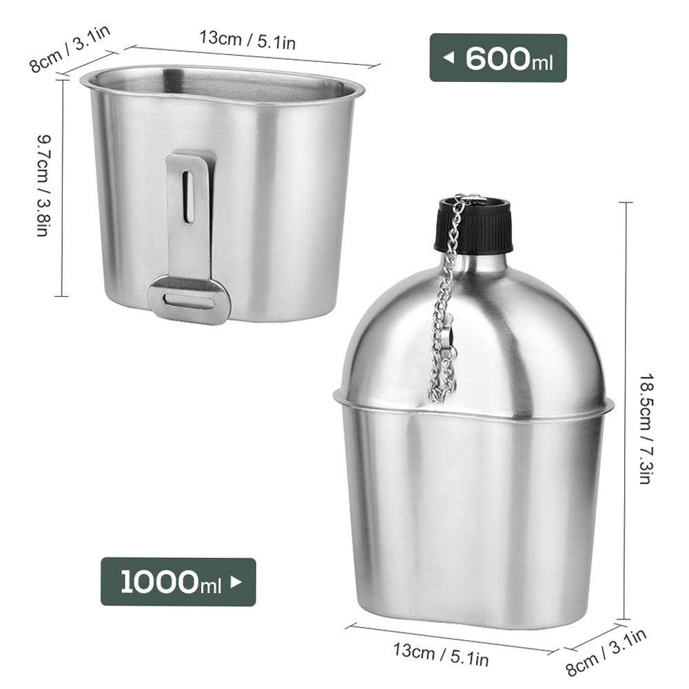 1000ml canteen and 600ml cup set, perfect for camping, hiking, survival and outdoor adventures.