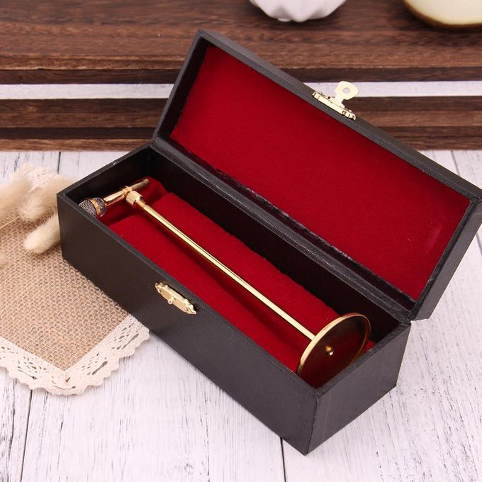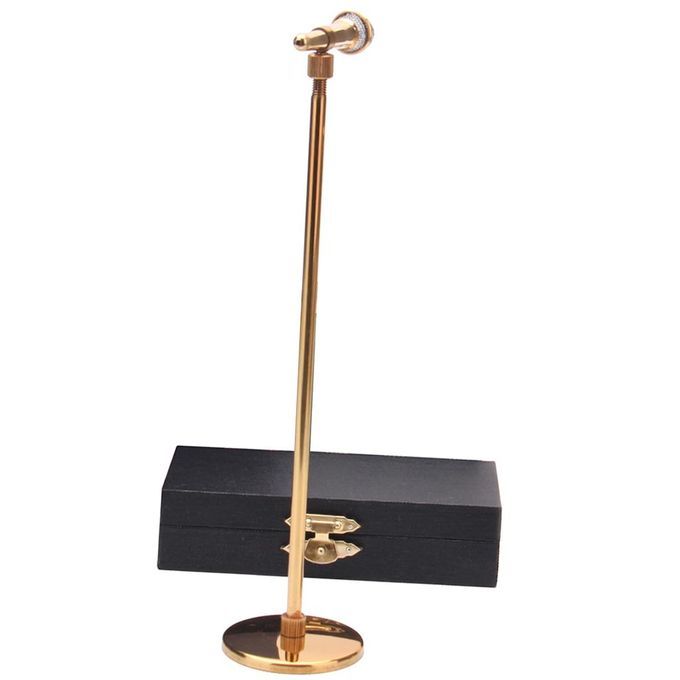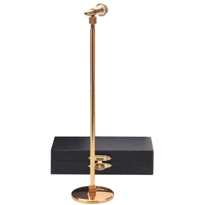 1/6 Scale Miniature Copper Micophone Studio KTV Mic Model with Wooden Box and Adjustable Support.