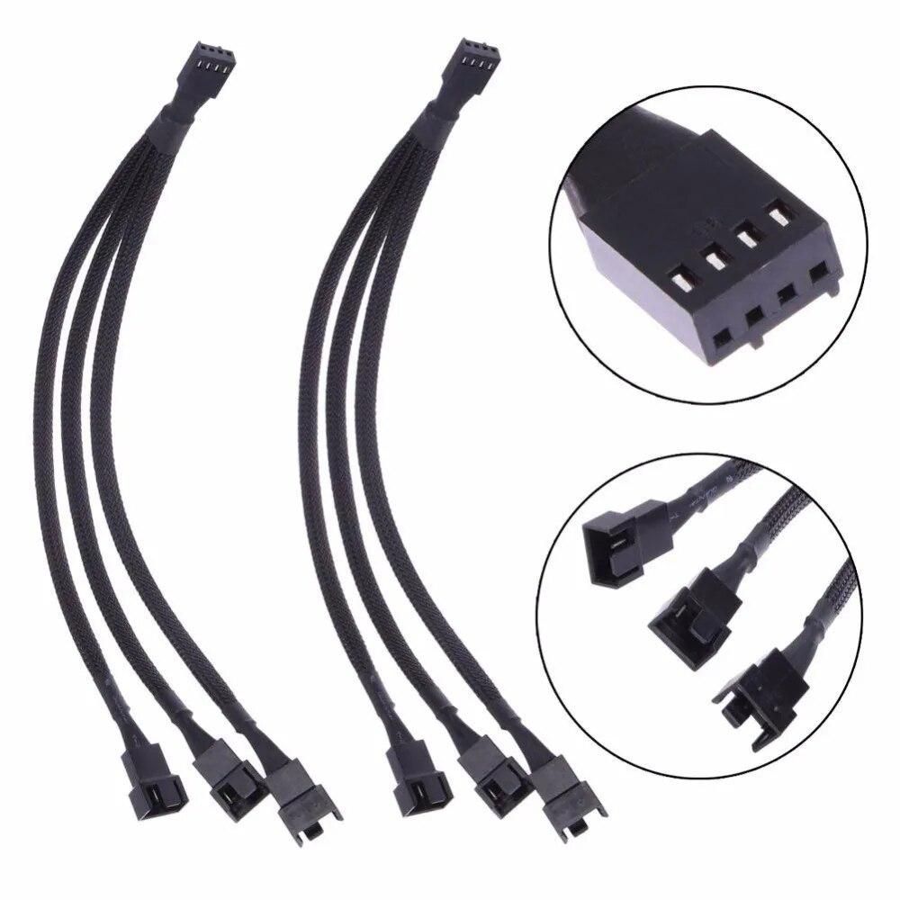 Buy 2PCS 3-Pin Female to 4 x 3-Pin Male Computer Case Fan Splitter Power Connector Black Sleeved Adapter Cable in Nigeria