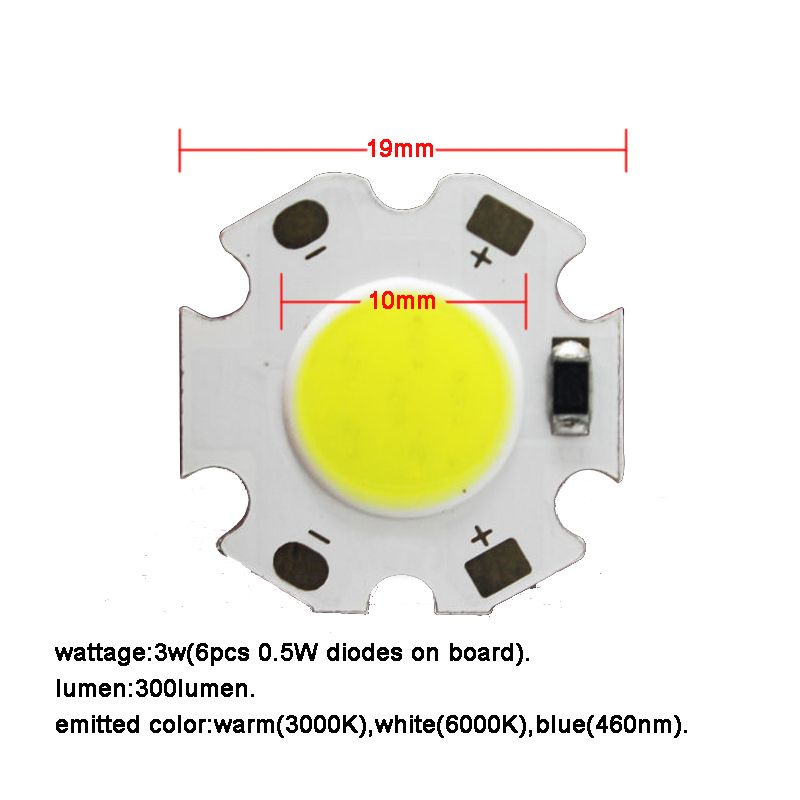 Note: The Base is 19mm,light-emitting surface is 10mm.