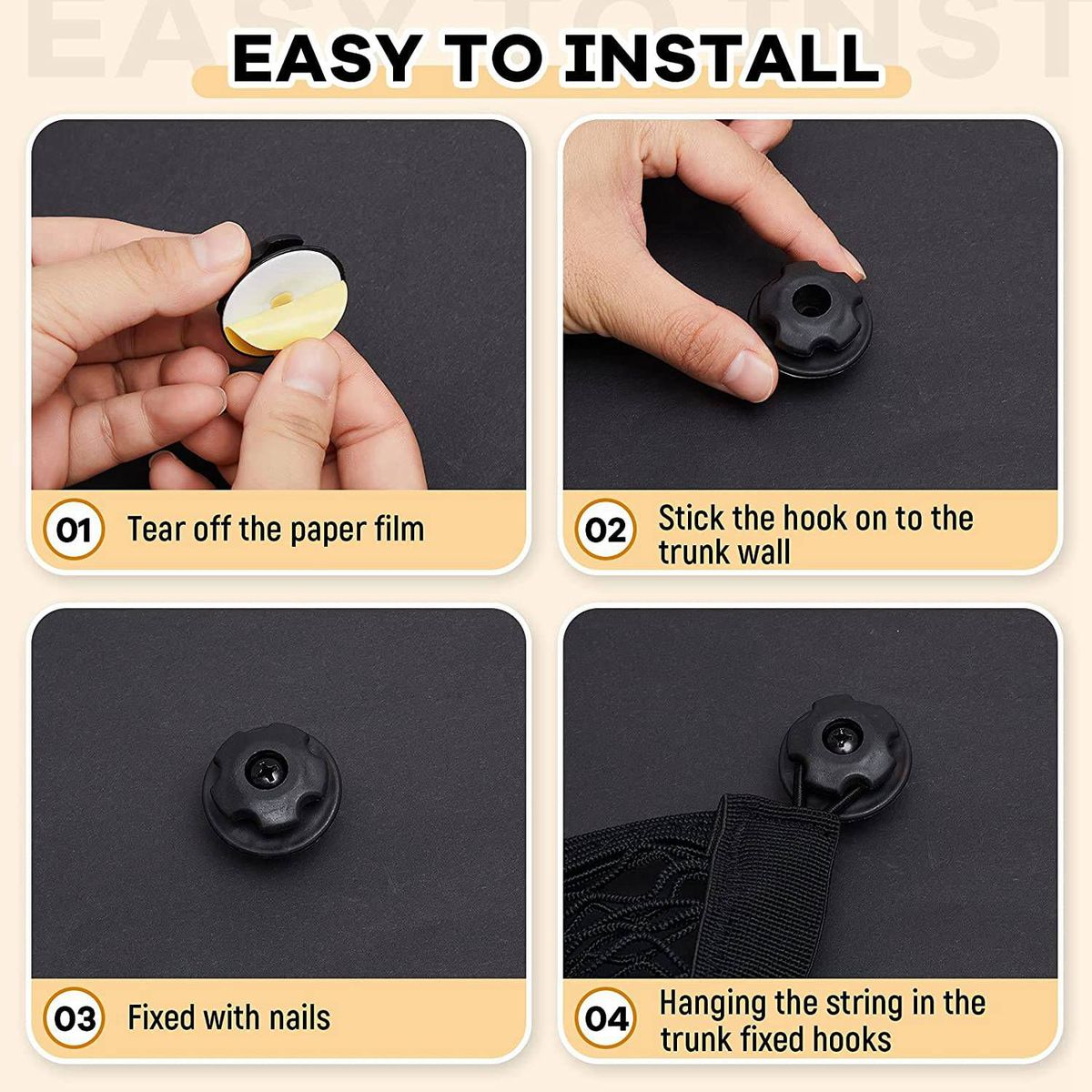 Easy to install: there comes with 8 pieces of hooks and 8 pieces of screws which are helpful for you to stabilize the net position, not easy to slip, making your car more neat, so you can manage room in your car more efficiently