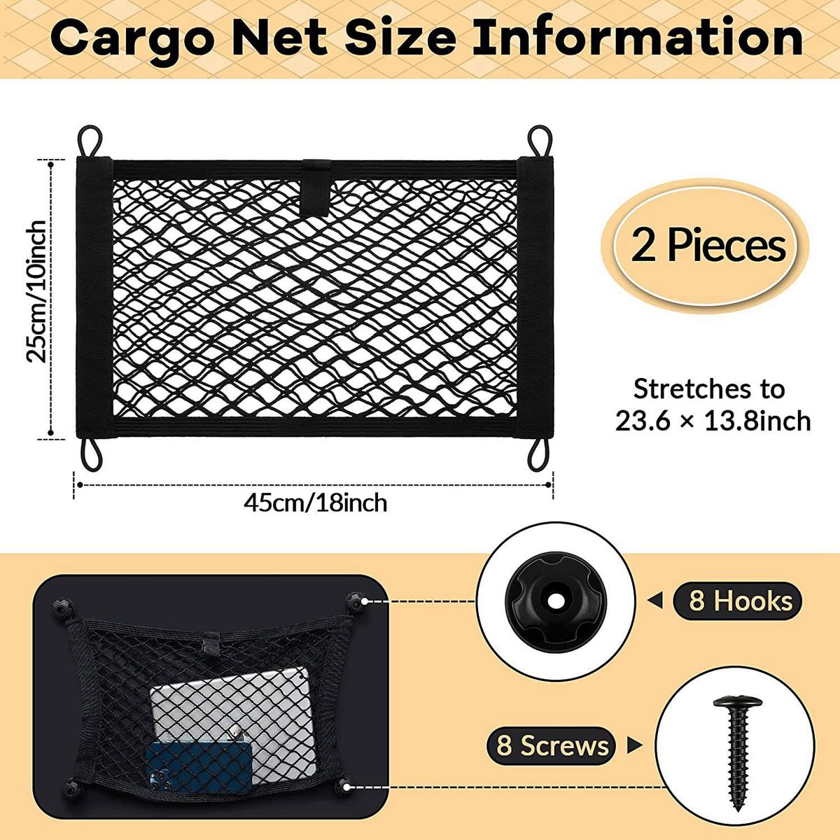 Name:2Pcs 45X25CM Car Trunk Net Pocket Car Cargo StoragePackage contents: you will receive 2 pieces of small cargo nets (included 8 hooks and 8 screws)