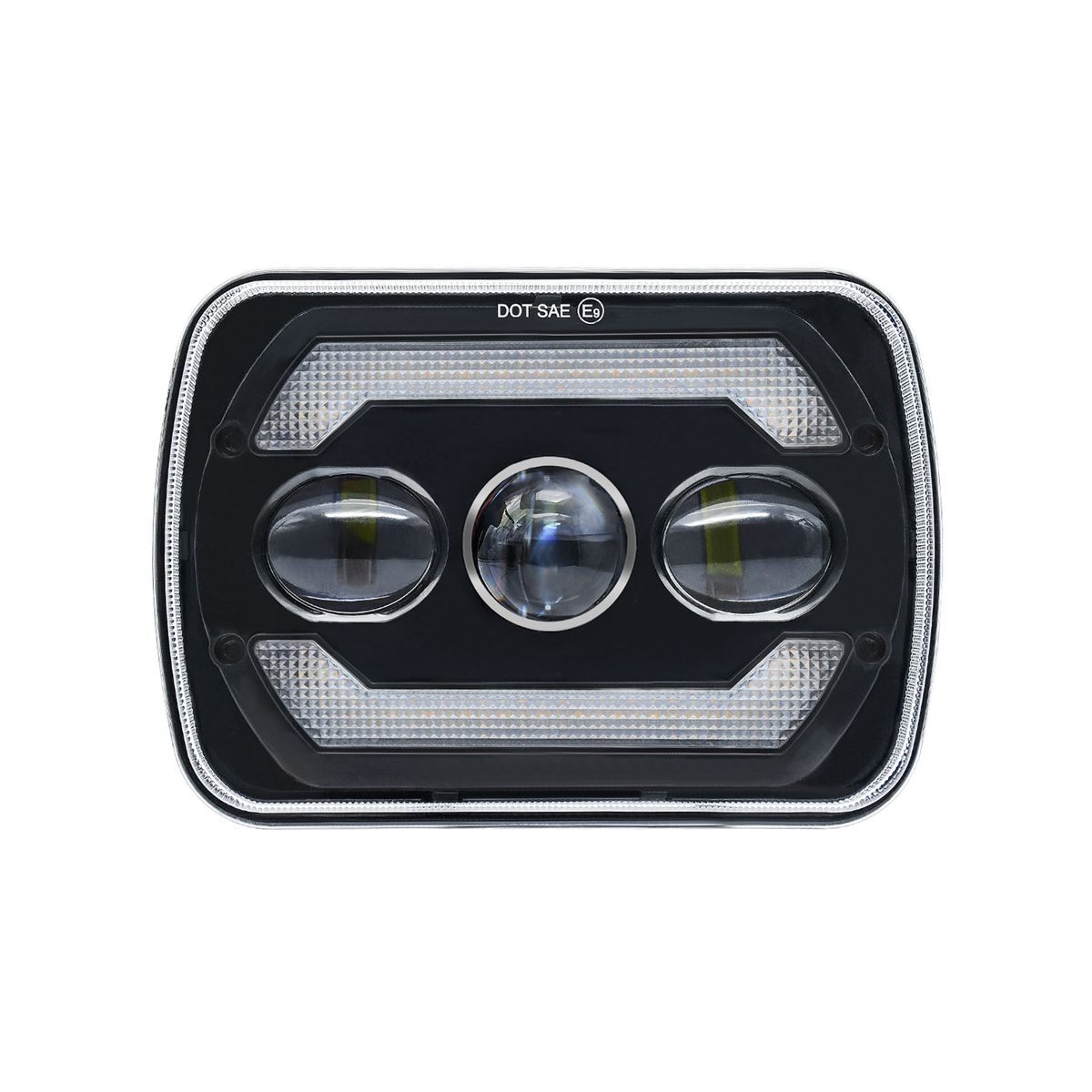 This LED headlight adopts a high-strength LED chip, with low light attenuation and long service life. The design adopts one flat large lens on both sides and one condensing large lens in the middle, making the low beam illumination wider and more uniform without dark angles, and the high beam illumination distance longer. The arc-shaped signal lights greatly improve the illumination effect of Daytime running lamp and turn signal warning lights.
