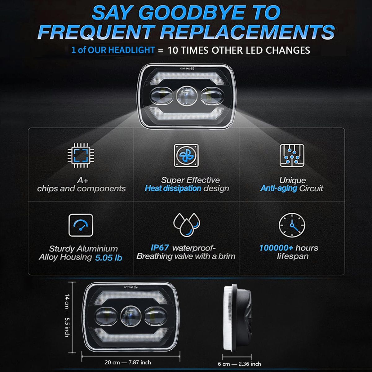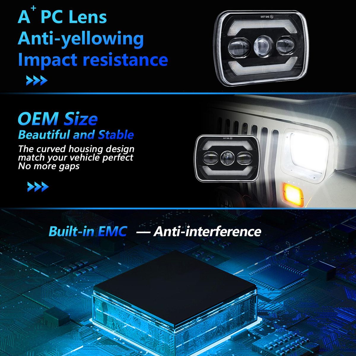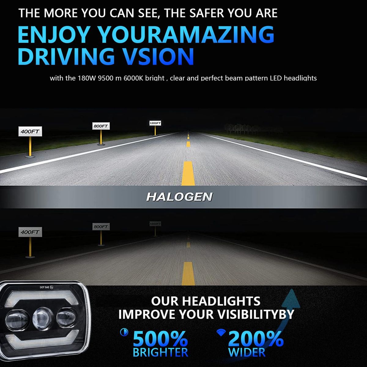 Buy 2Pcs 7 inch LED Headlights Approved 7x6 5x7 inch LED Headlights with White High/Low Beam DRL Amber Turn Signal 7'' Square Headlamp 6000K 180W IP67 Waterproof in Nigeria