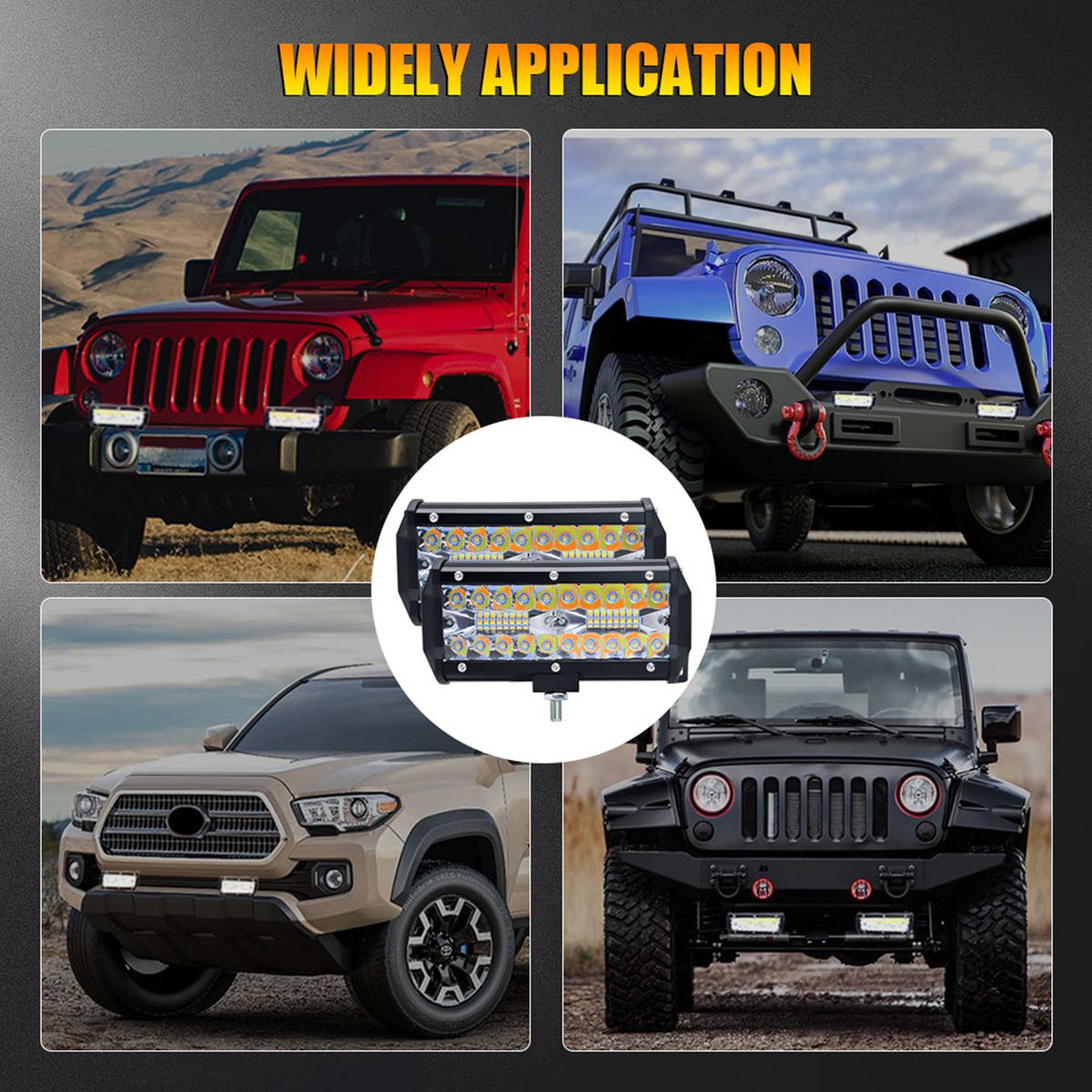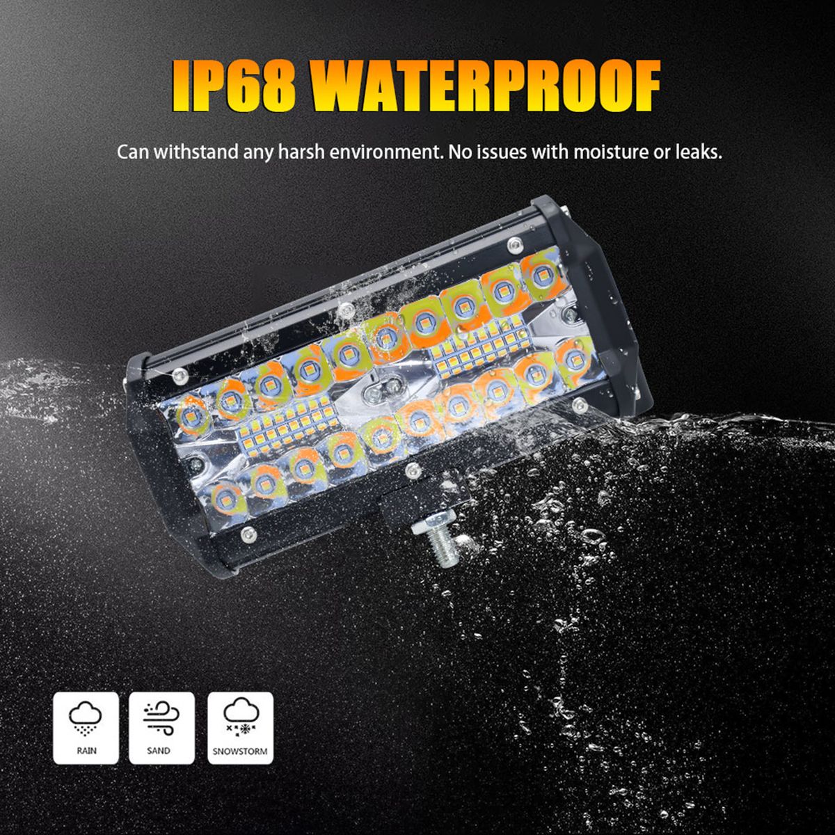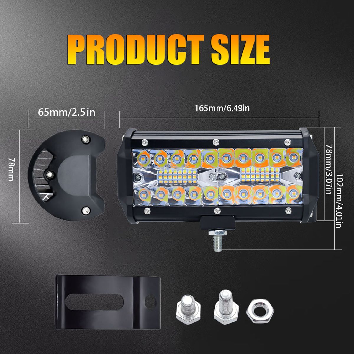 Features:Brighter at Night: This LED work light is equipped with high-intensity dual color chips. Five new modes are designed, white light/yellow light/white light strobe/yellow light strobe/(yellow light+white light) alternative strobe, which can be selected under different conditions.