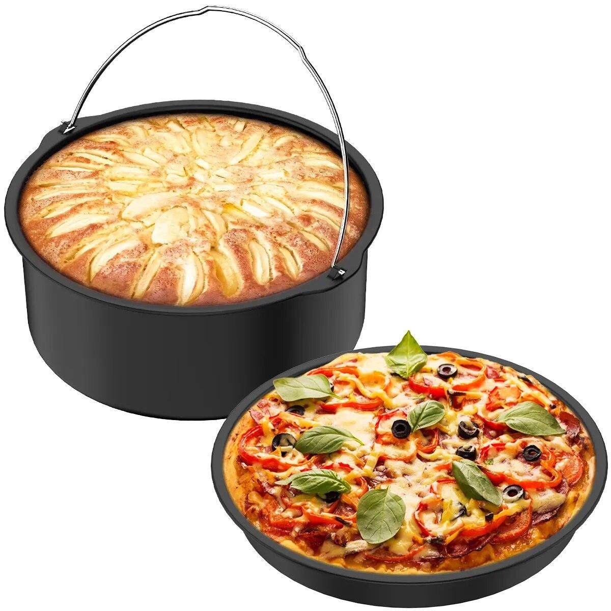 Buy 2Pcs Air Fryer Accessory Durable Air Fryer Pizza Pan and Baking Cake Barrel with Non-Stick Coating Round Baking Cake Pan Set in Nigeria