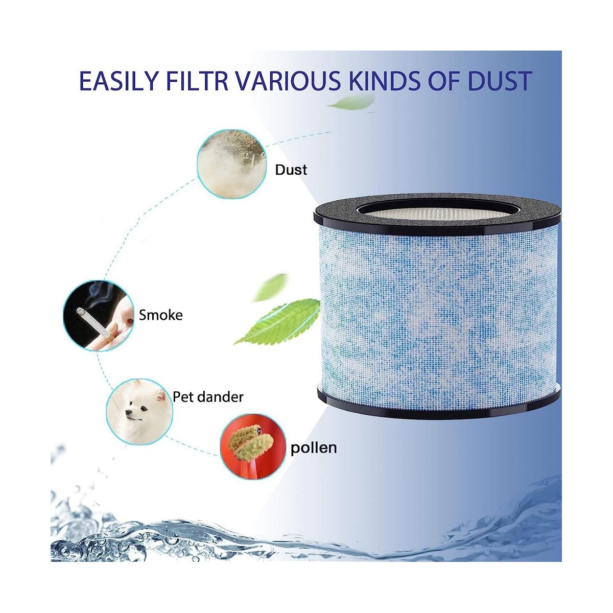 3 IN 1 FILTRATION: Pre-filter removes larger particles in the air like dust, hairs, pet fur; HEPA Filter captures of airborne particles down to 0.3 Micrometres in size such as pollen, dirt, pet dander; Blue Filter: Block particles again.