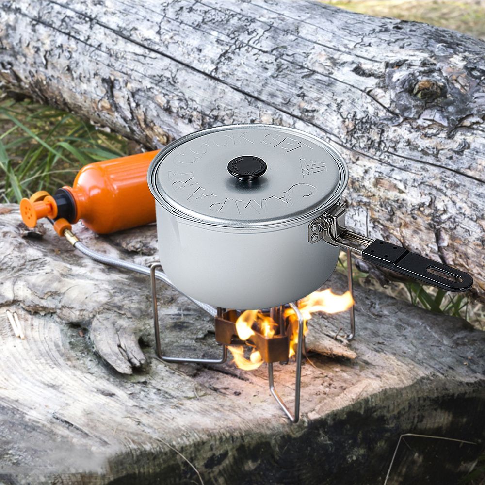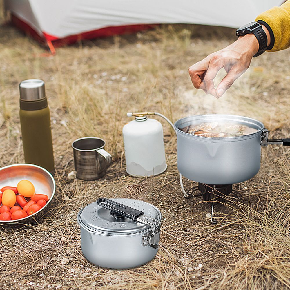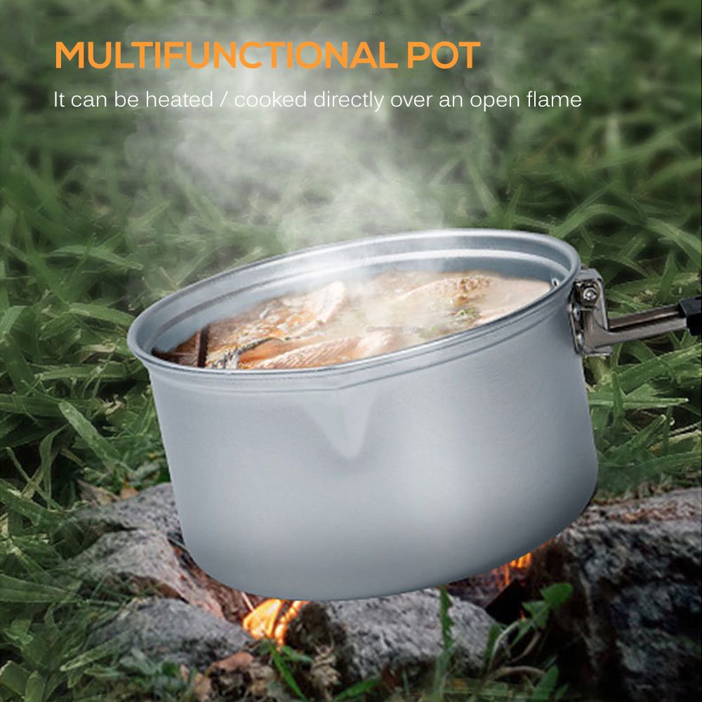 Aluminum Alloy Camping Pot, Camping Cook Pot with Lid and Folding Handle, Outdoor Bento Pot for Camping Hiking and Picnic