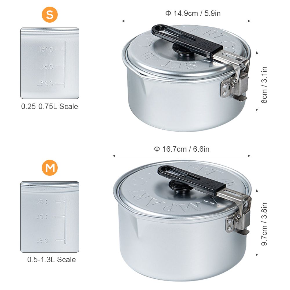 ● Easily pack the small pot into medium pot,compact and portable.