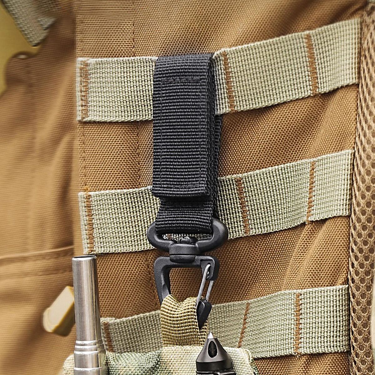 Generally used with regular belts, hiking belts and backpacks, this hanging buckle is easy to use for outdoor activities such as hiking, camping and climbing to store your stuff.