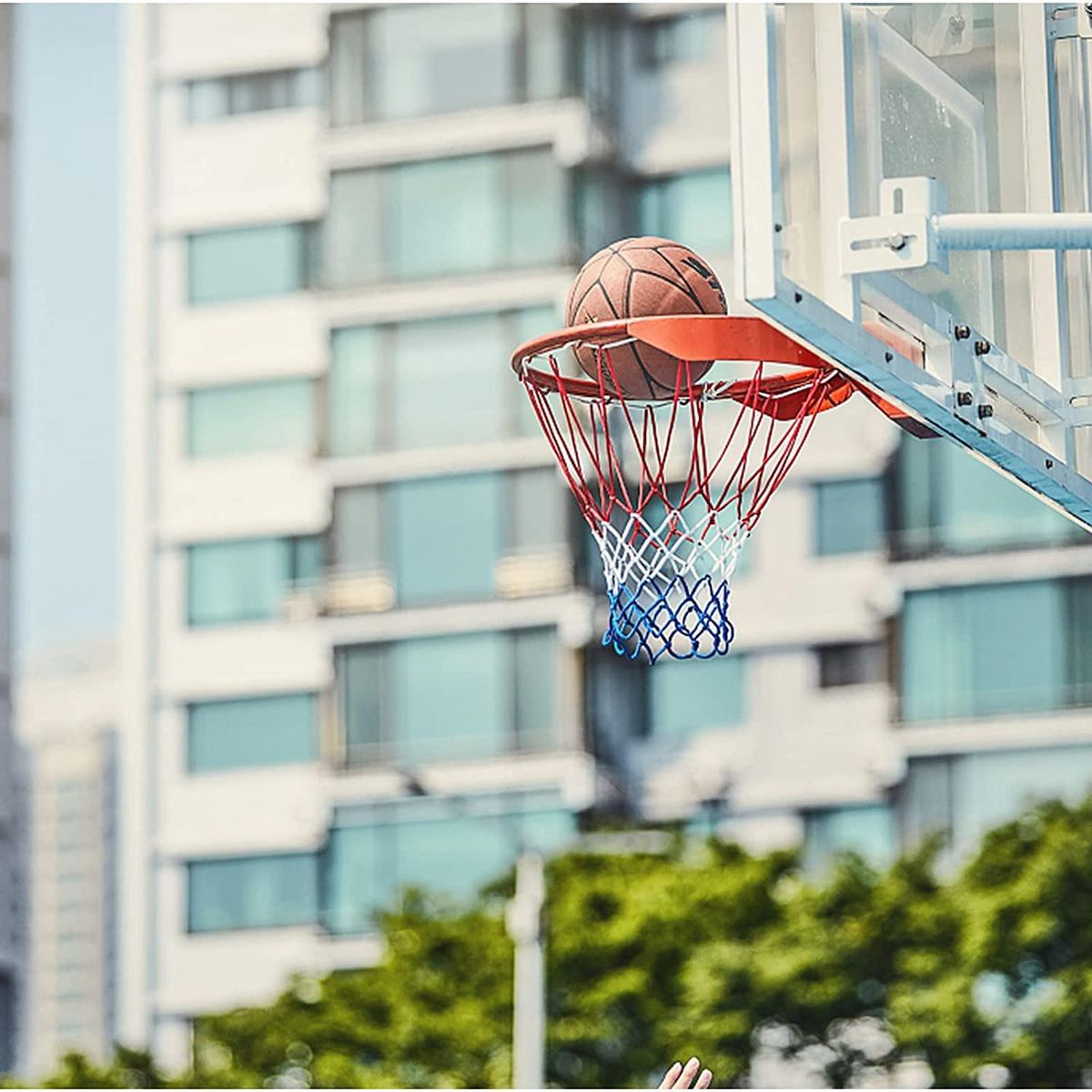 [Unique Design]This basketball net is designed in red, white and blue with design modern and colorful, and it is eye-catching. For those who play basketball, it also helps to relax the eyes. It is not only suitable for professional training, but also for leisure entertainment.