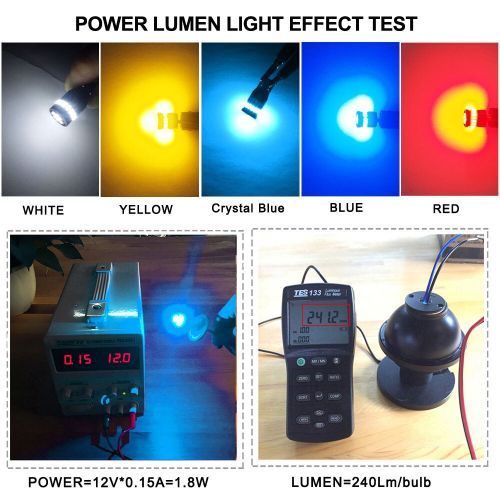 1. Socket Type: T10 W5W 194 168 2825 2. Led set: 24pcs 3014 SMD 3. Voltage: 12~14V DC 4. Current: 0.15A 5. Power: 1.8W 6. Lumen: 240Lm/bulb 7. Light Color: , Red, Yellow, Blue, Crystal blue 8. Warranty: 1 Year 9. Application: Parking/Clearance Light, Front/ Rear Side Marker Light, Position Light, Interior Light, Dome Light, Reading Light, Glove Box Light, Door Light, Trunk Light, License Plate light, Turn Signal Lights etc.