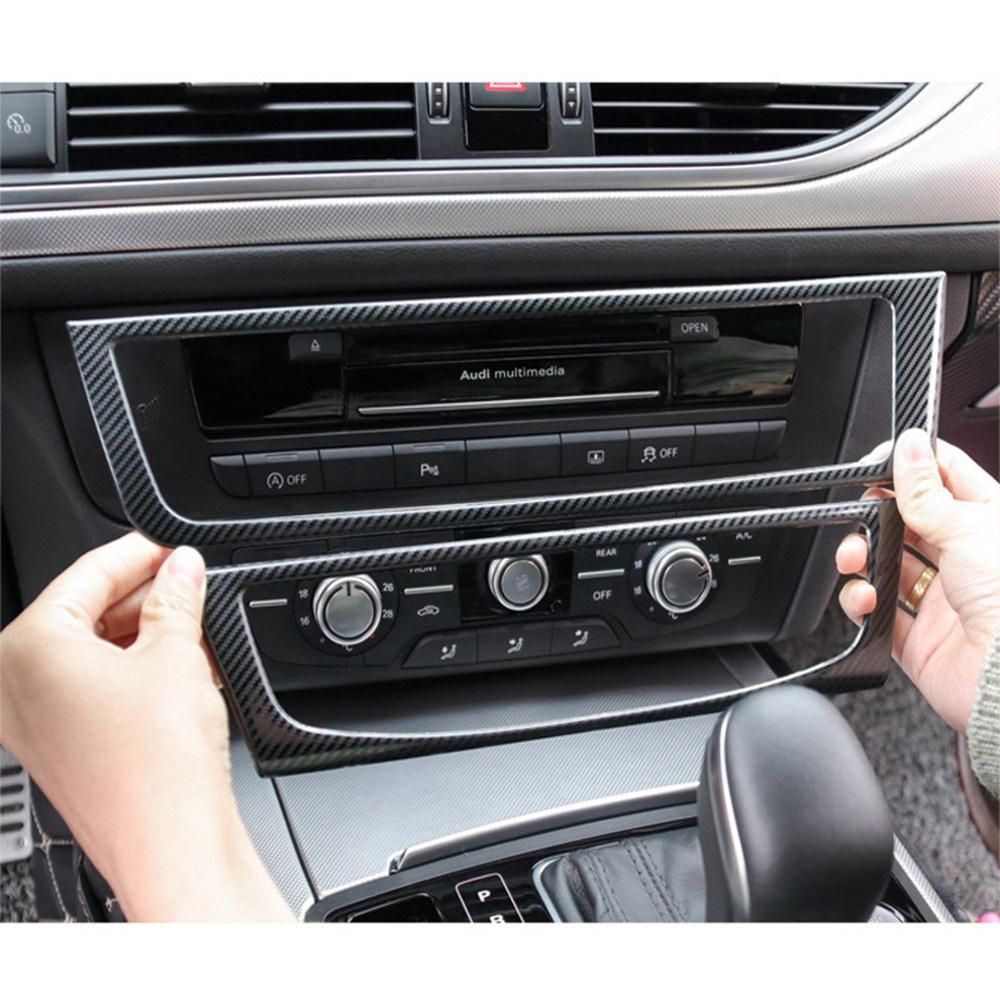 2Pcs Car Carbon Fiber Stainless Steel Console AirName:Console Air Conditioner CD Panel