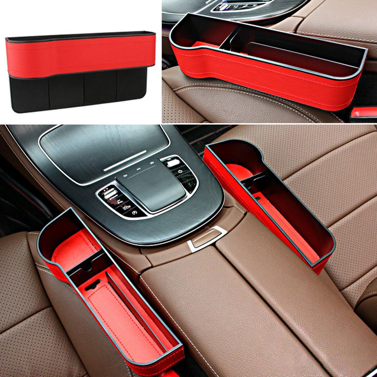 Buy 2pcs Car Seat Gap Filler Organizer Storage Box Between Front seat Auto Premium PU Leather Console with Cup Holder Car Pocket for Interior Essentials Red for Right Side and Left Driver in Nigeria