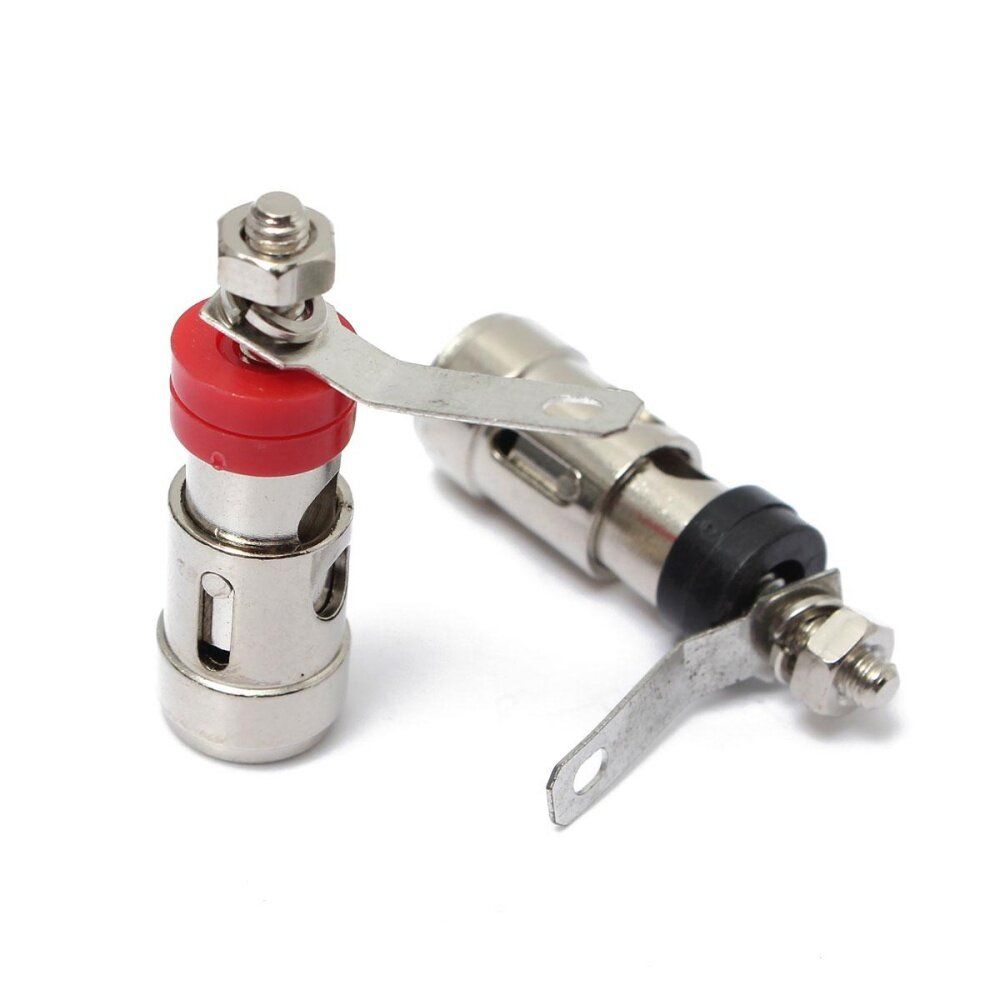 2x Silver Plated Brass Speaker Binding Post Spring Loaded Press Terminal(Black+Red)