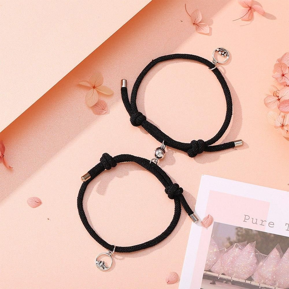 Material: High quality wax ropes alloy pendants( ocean and mountain) magnetic . Durable braied rope style, suitable for women and men. Strong adsorption magnetic 't separate easily. At of the rope, we have done wax drop treatment which is not only beautiful, also not easy to loosen. We have considered all possible inconveniences.