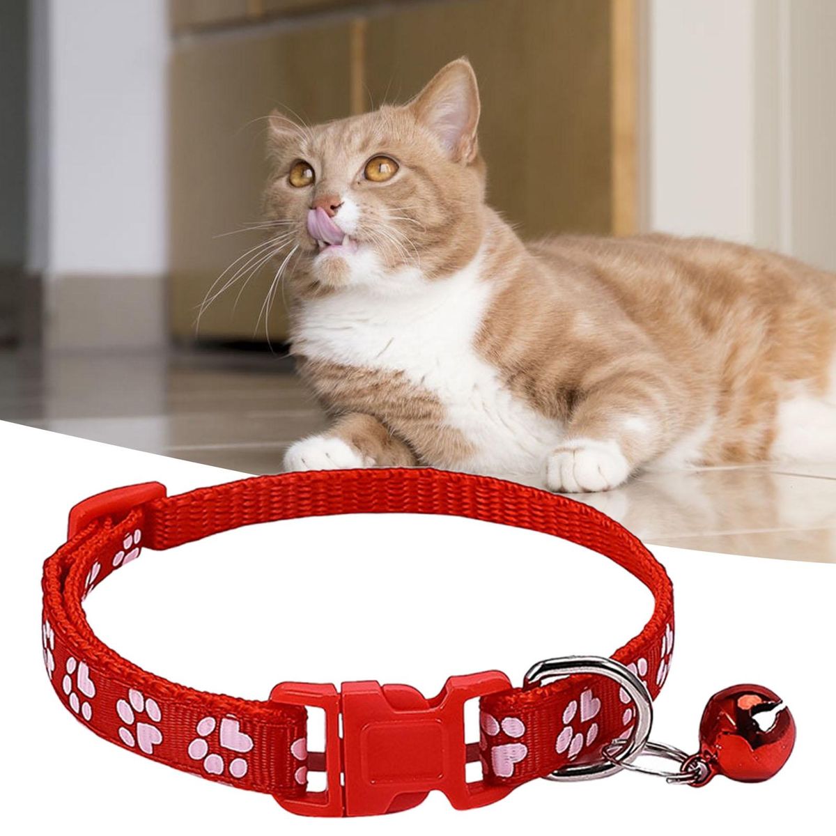A pet collar is printed with claw pattern, which is cute and exquisite in workmanship. It is durable, soft and light, and will not add any burden to the pet's neck.