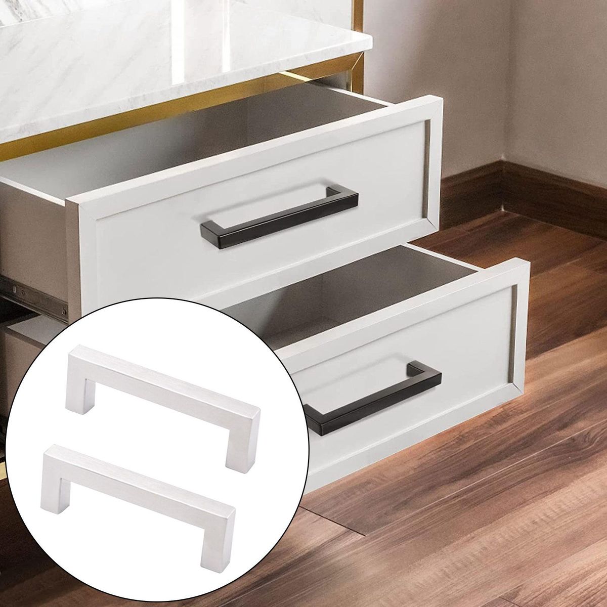 【Application】: Dresser handles are the perfect fit for the bin, dresser, drawer, cabinets, bathroom vanities, tables, hutches, cupboards, and all home furniture.