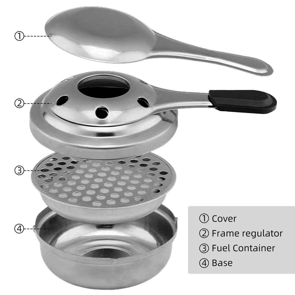bull; Multiple Use: This mini stove is suitable as the heater of fondue or hotpot. It is also suitable for outdoor hiking and camping.