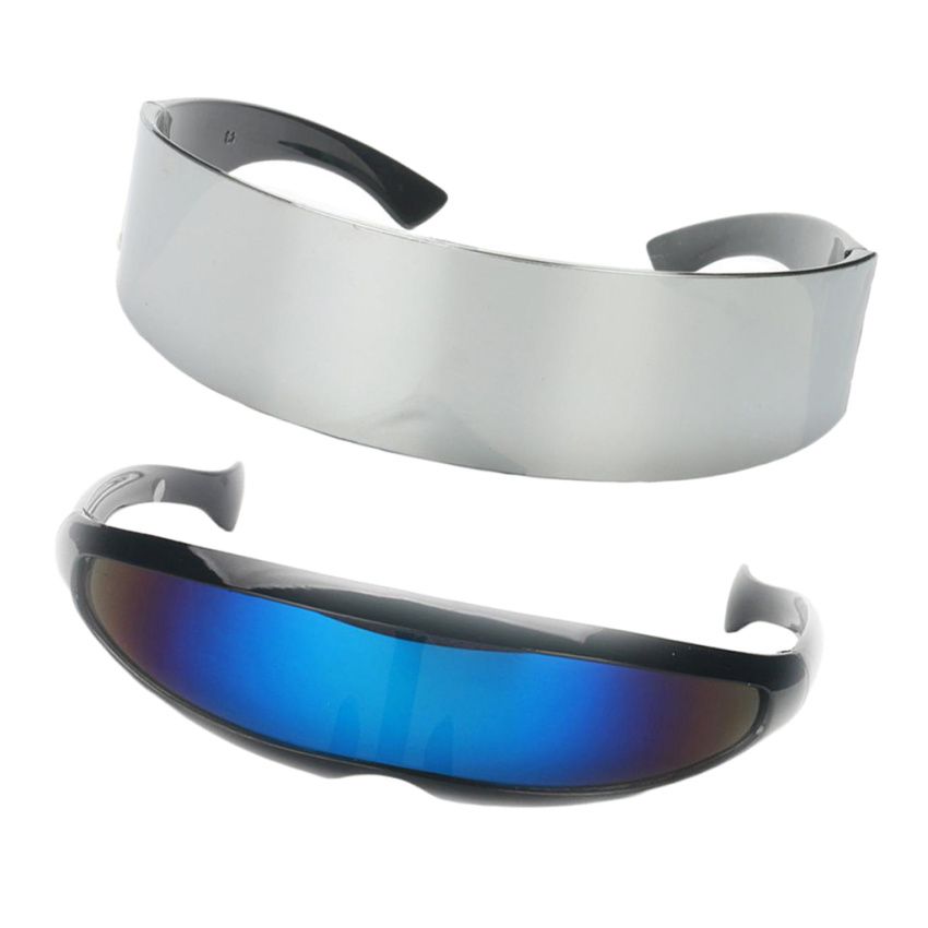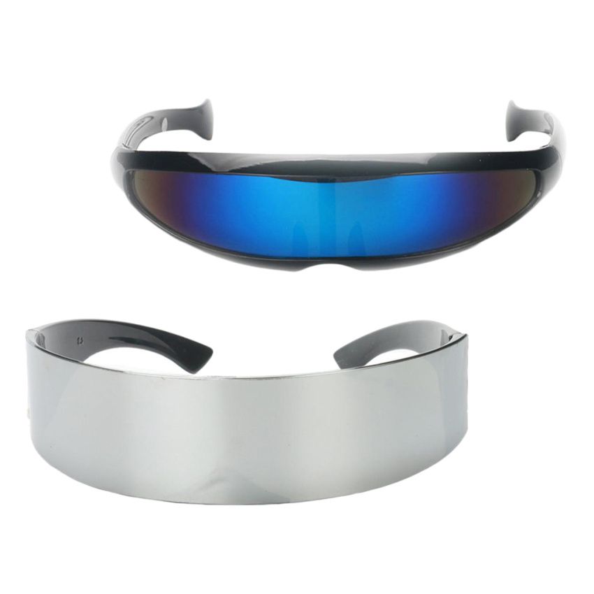 Novelty fun metallic silver space Halloween eye glasses and narrow blue shape sunglassesFunny futuristic soldier space alien party favors photobooth eyewear costume eyeglassesLight weight eyewear, great photo props for festive parties.Perfect photo booth accessory for birthday, holiday, cosplay party, fancy dress partiesSuit for unisex adults and kids