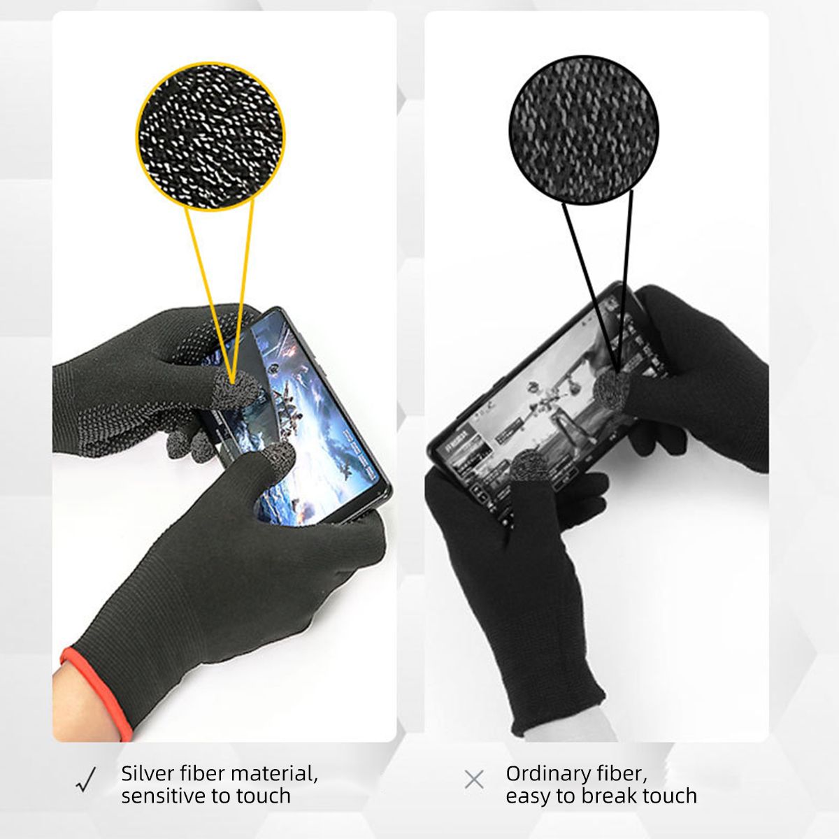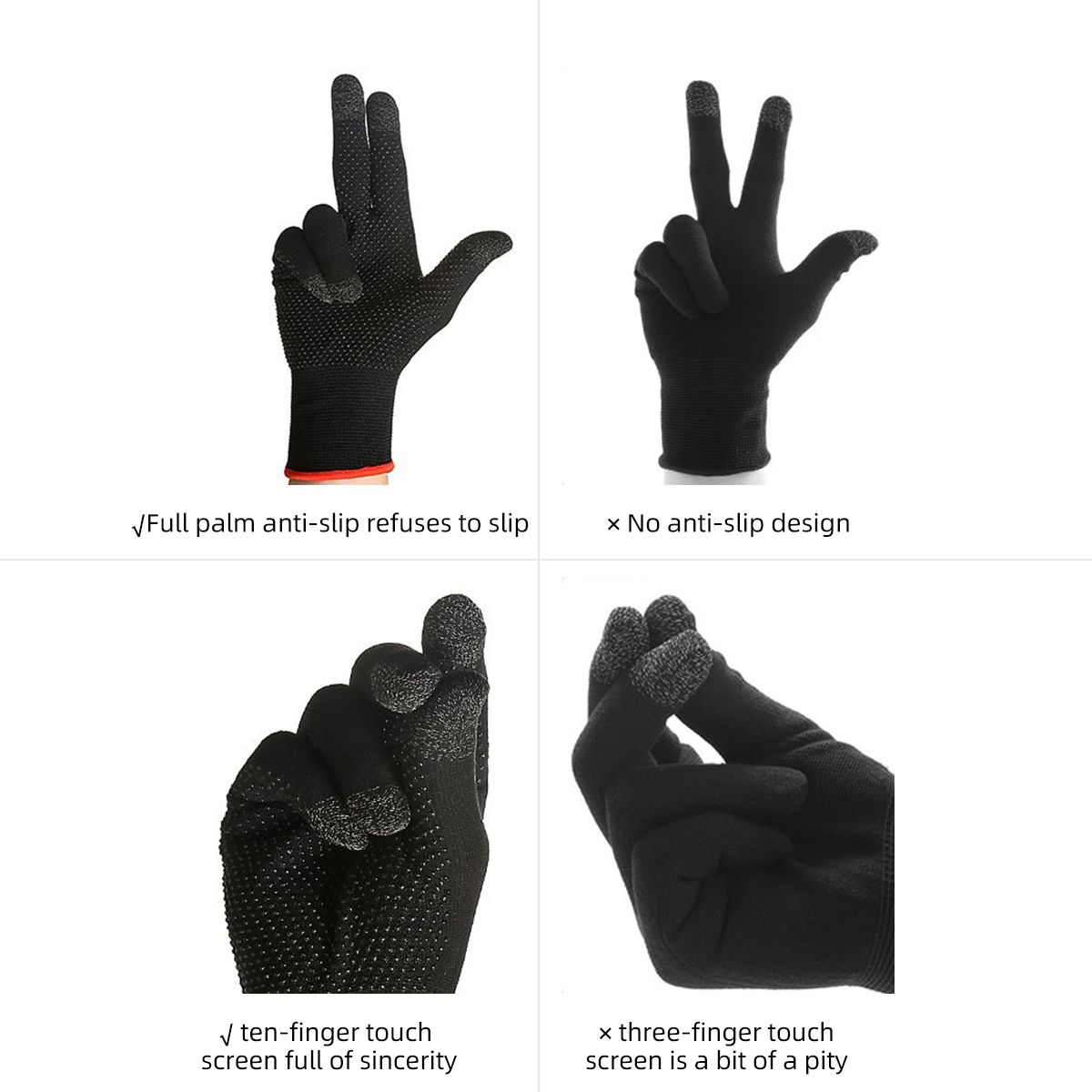 1X 2pcs Gloves Sweat Proof Non-Scratch Sensitive Touch Screen Gaming Finger Thumb Sleeve Gloves For PUBG Hand Cover Game Controller