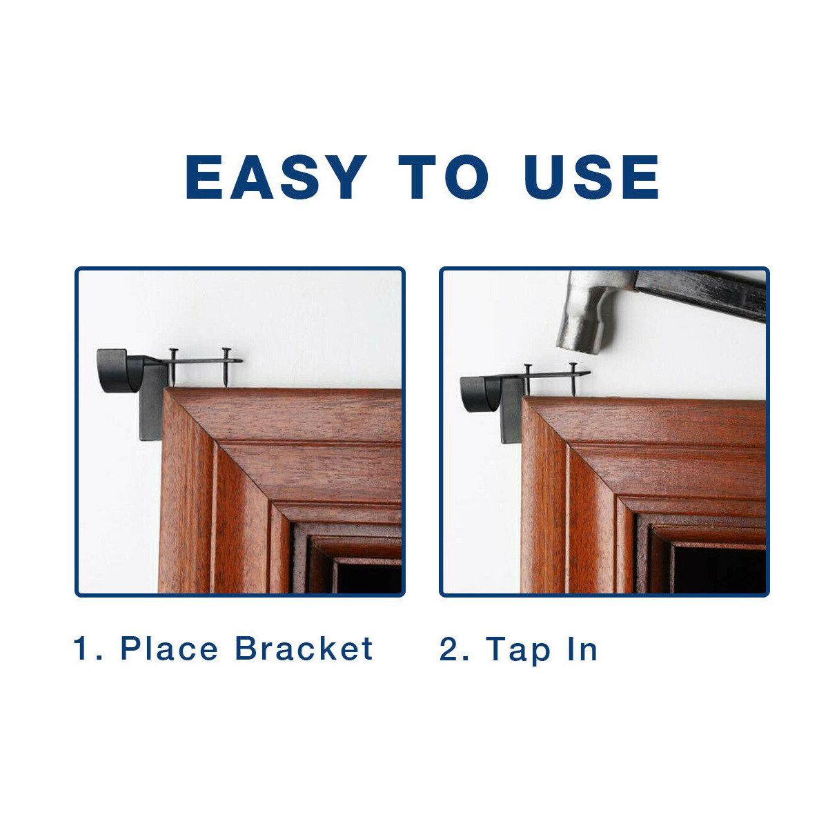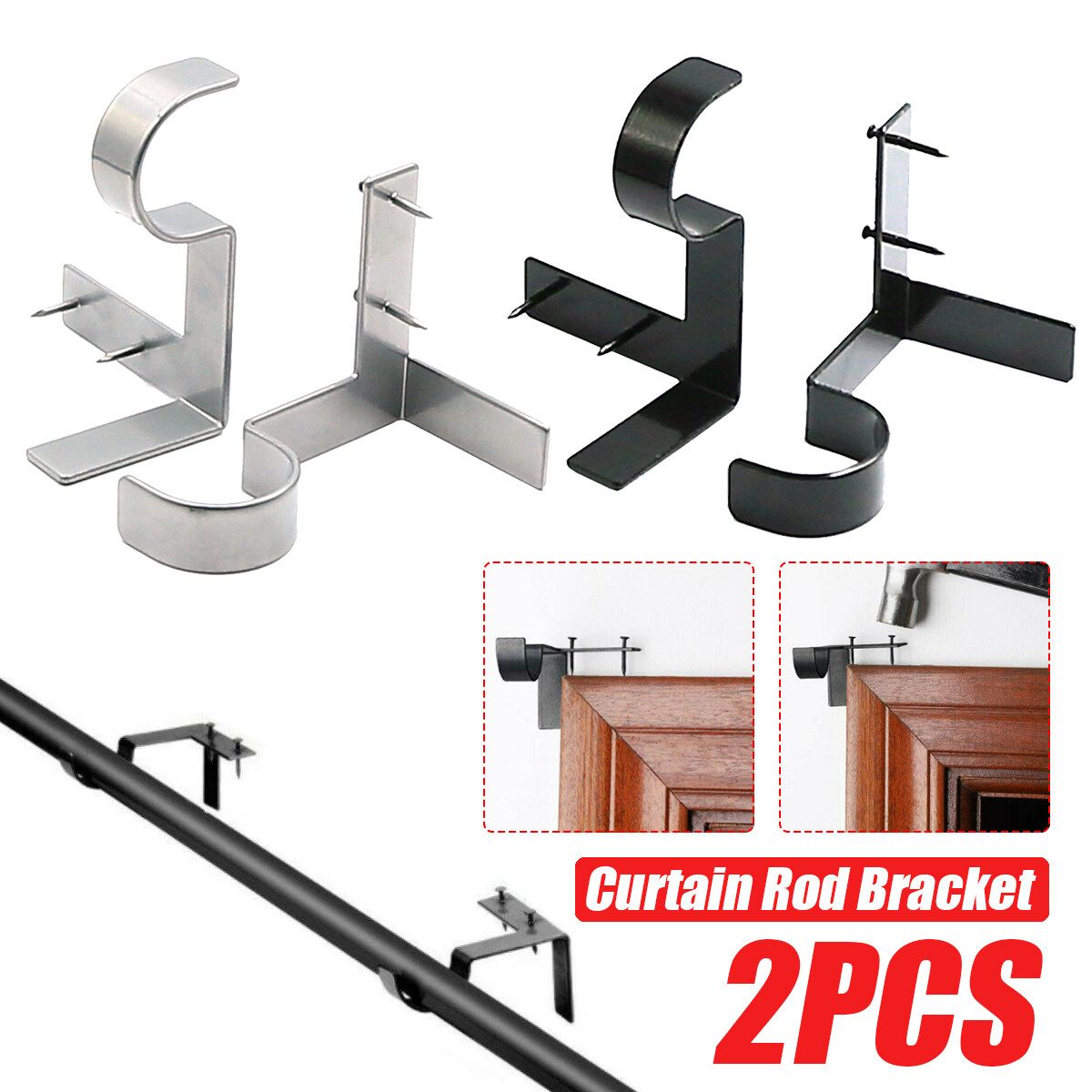 2PCS Hanging Curtain Rod Pole Holder Bracket Tap Window Frame No Drill
