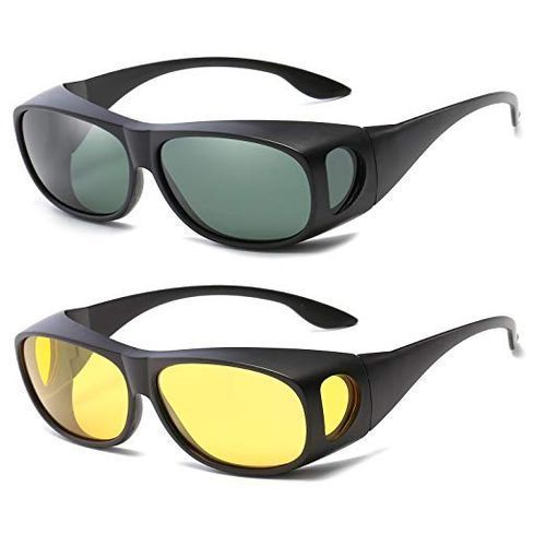 The night vision glasses improve color, clarity and optical definition, so you can see better when driving. The special anti-glare lenses reduce eye strain and glare from headlights, streetlights and traffic lights in wet or dark conditions. Plus, these fashionable Euro-style wraparounds fit easily over your prescription glasses, or can be worn alone! Perfect for men or women. Lightweight.