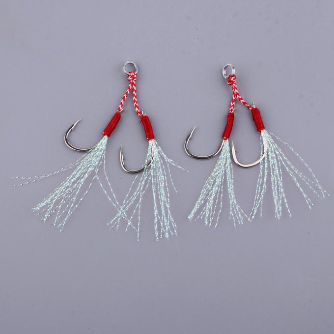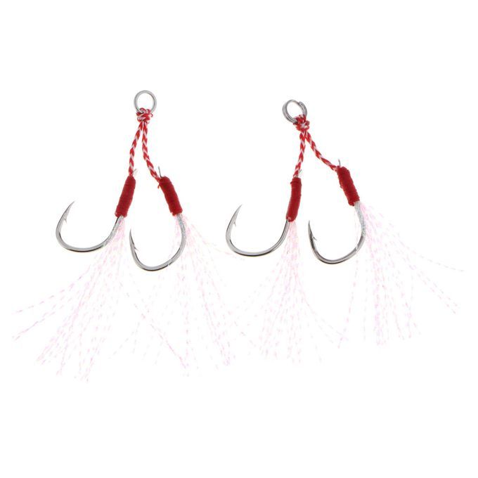 Stainless steel Assist Hooks, barbed, tied, with braided line & ring.