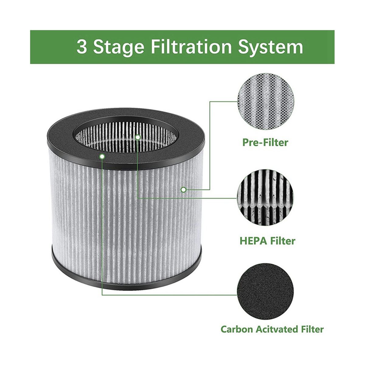 [3 STAGE FILTRATION SYSTEM]2801 filter is specially designed for personal air purifier 2780A to a best purifying performance.High quality 3-in-1 HEPA filter capture 99.97% of airborne particles(0.3 Micrometre). It can also capture harmful odors and volatile organic compounds in the home.