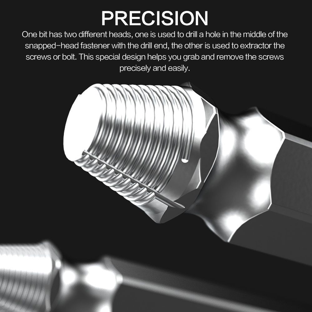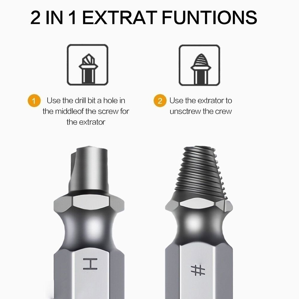 - Screw extractor set which will work with any drill and all the screw size or bolt.