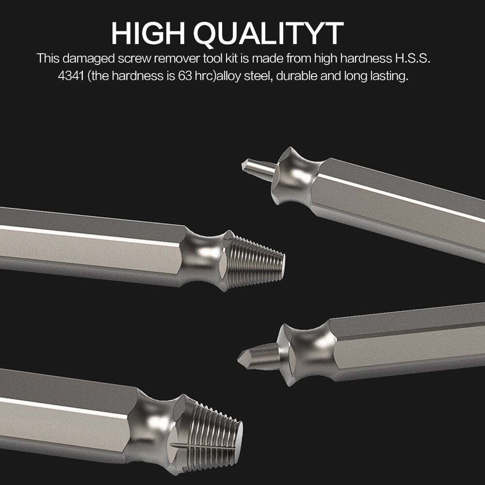 - Stripped screw extractor is made of High-Speed Steel 4341. High hardness, durable and easily removes damaged screws.